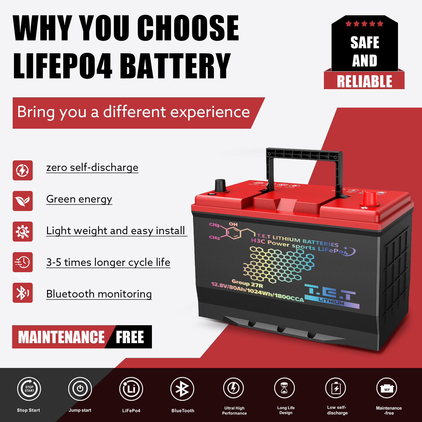 T.E.T LiFePo4 Auto battery