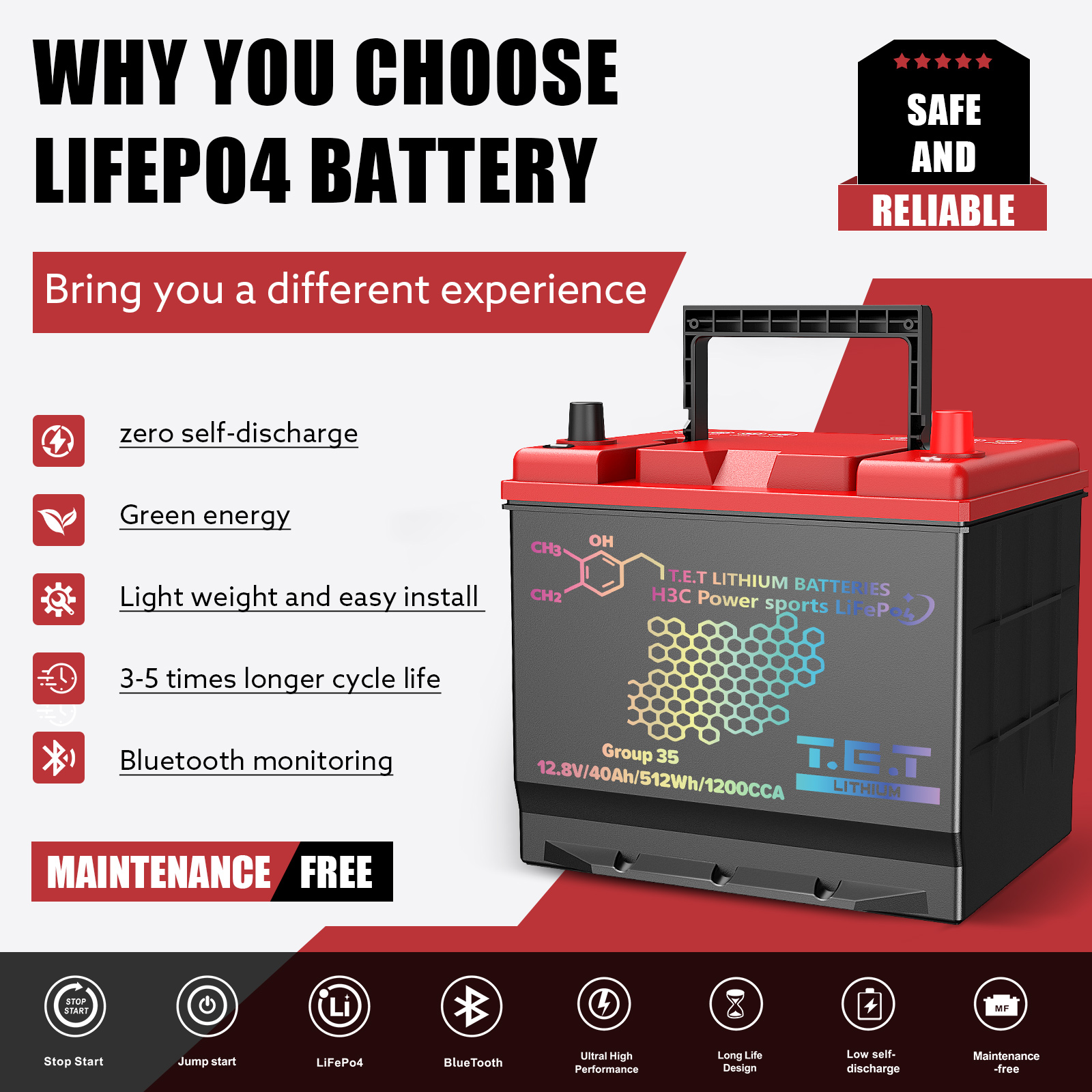 T.E.T LiFePo4 Auto battery
