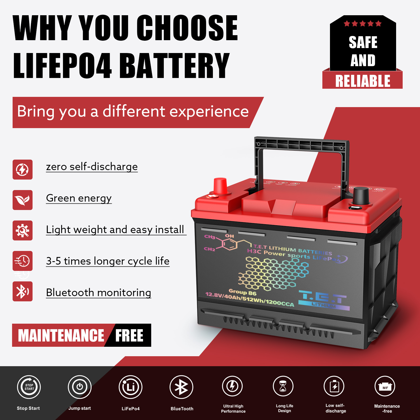 T.E.T LiFePo4 Auto battery