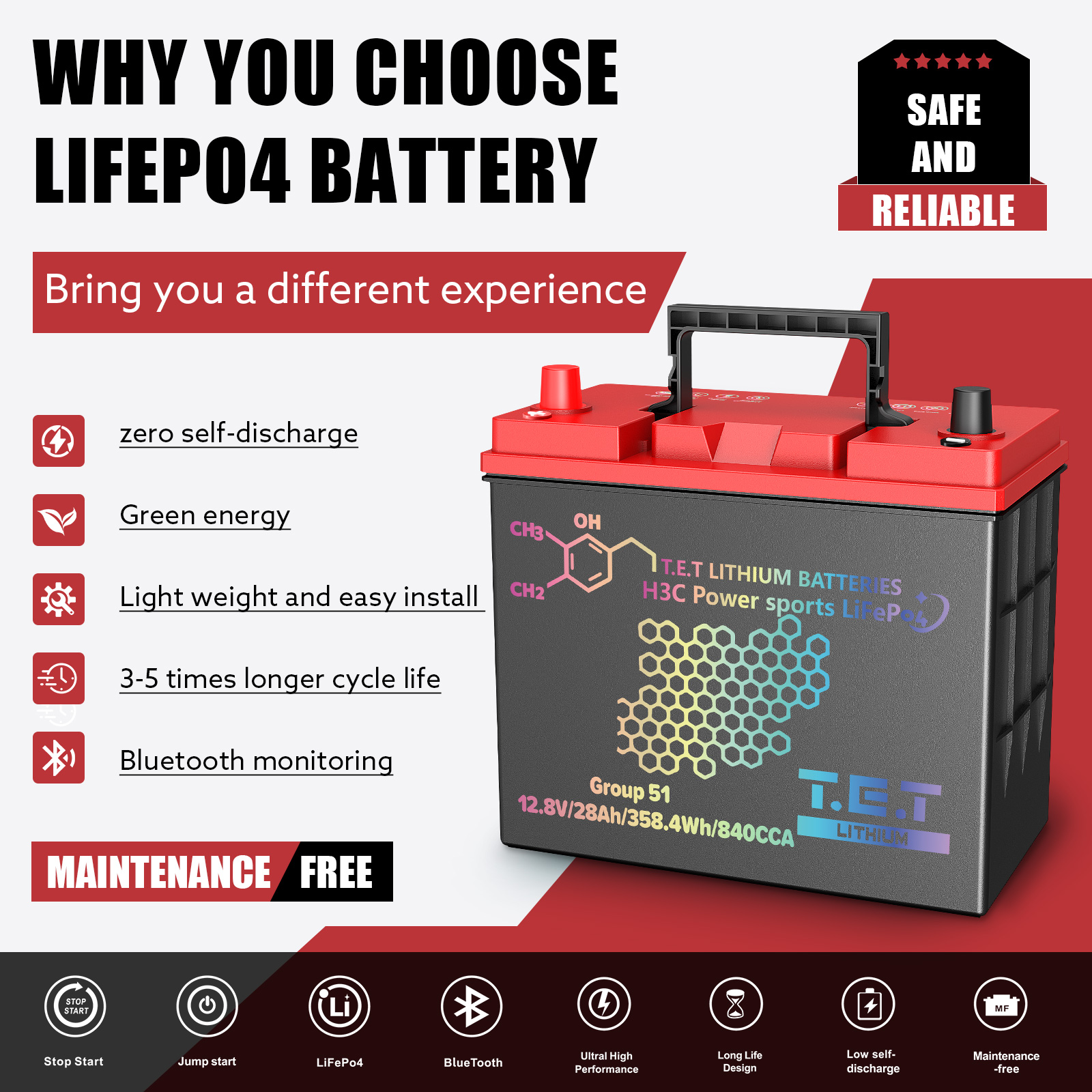 T.E.T LiFePo4 Auto battery